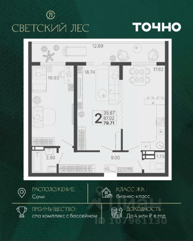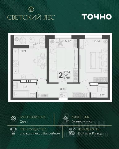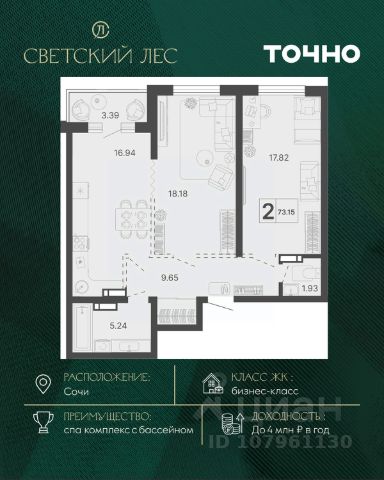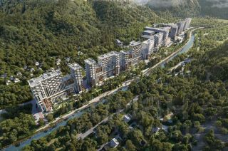 Жилой комплекс состоит из 7 домов переменной этажности от 11 до 20 этажей. В холлах и вестибюлях выполнена дизайнерская отделка, установлены скоростные лифты. На 1 этажах расположены зоны ожидания и колясочные. В проекте предложено множество планировочных решений: в наличии квартиры классического типа. Сдаются они с подчистовой отделкой, панорамными окнами и высотой потолков в 3м. Некоторые квартиры имеют вид на лесной массив и горы. На закрытой территории комплекса выполнен ландшафтный дизайн, установлены безопасные детские площадки для детей всех возрастов, места для отдыха, зоны барбекю с беседками, спортивные площадки, установлен открытый бассейн. На территории также оборудована своя набережная протяженностью в 1,2км. Для владельцев автомобилей предусмотрен отдельный многоуровневый паркинг. Жилой комплекс располагается в активно развивающемся Хостинском районе. В нескольких минутах ходьбы находятся поликлиники, школы, детские сады, кинотеатр, магазины и кафе. До центра Сочи можно добраться за 30 минут транспортом.