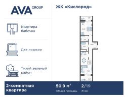 В продаже 2-комнатная квартира, площадью 50.96, расположенная Литер 10 жилого комплекса бизнес-класса "Кислород". Комплекс от девелопера AVA находится в Сочи, на северном склоне горы Бытха, в 7 минутах езды от центра города.
