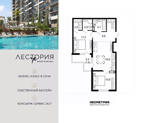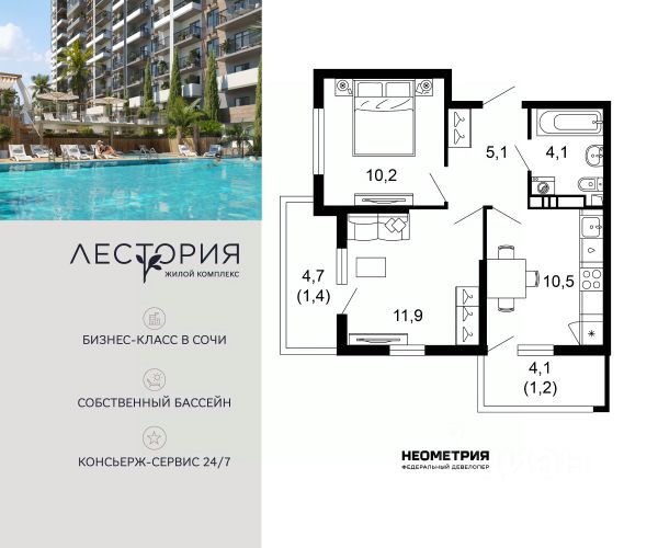 Проект включает в себя 7 жилых корпусов высотой 12 этажей. В подъездах выполнена дизайнерская отделка в светлой цветовой гамме с яркими акцентами, для удобства жителей в местах общего пользования предусмотрена навигация. В каждой секции предусмотрены помещения для хранения велосипедов и колясок с обустроенным местом для мойки колес и лап домашних животных. Покупателям в ЖК предложено множество планировочных решений: в наличии квартиры, как классического типа, так и европланировки. Из окон открываются виды на реку и горы. Квартиры сдаются без отделки. В состав комплекса входит школа на 2 000 мест, детский сад на 550 мест и фитнес-центр. На первых этажах расположены коммерческие помещения. Во дворах установлены детские площадки, спортивные комплексы и деревянные беседки для отдыха. По периметру ЖК ведется видеонаблюдение, к которому можно подключится online при помощи специального приложения для мобильных устройств. Рядом с комплексом располагается благоустроенная набережная реки Кудепста. Комплекс расположен в микрорайоне Кудепста города Сочи. В окрестностях района находится большая плантация пробкового дуба. В пешей доступности есть школы, детские сады, магазины, медучреждения, салоны красоты и места для отдыха. Комплекс расположен в 1,9 км от моря, и 7 км до Сочи.