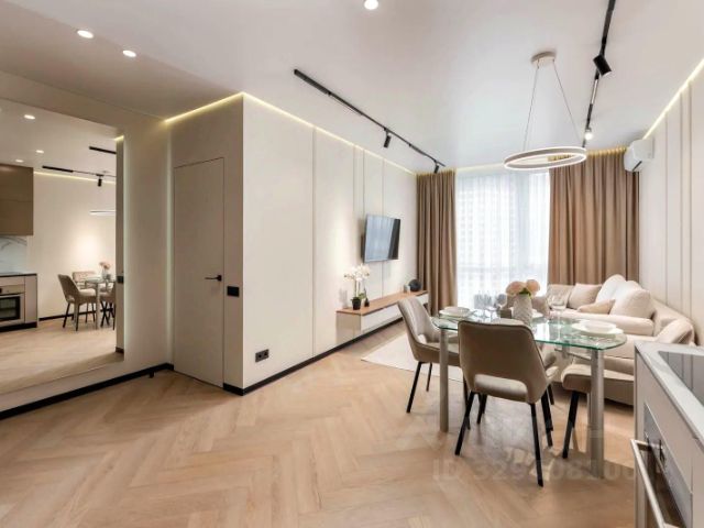 Интерьер выполнен в современном стиле с продуманной планировкой и грамотным зонированием пространства. В квартире приятно находиться за счёт большого количества света и правильного освещения. По всей площади установлен тёплый пол, что создаёт дополнительный комфорт в любое время года, также предусмотрены радиаторы отопления. Квартира полностью укомплектована. Новому владельцу остаётся всё: кухонный гарнитур со встроенной техникой (холодильник, варочная панель, духовой шкаф, посудомоечная машина), стиральная машина, кондиционеры, вся мебель, спальные зоны, системы хранения, текстиль и элементы декора.