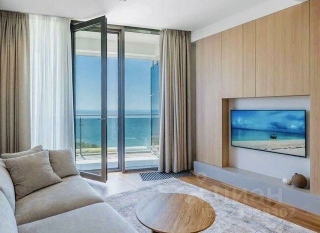 Апартаменты на первой береговой линии с прямым видом на море в комплексе премиум-класса на первой береговой линии. Внутреннюю инфраструктуру комплекса составляют: SPA-центр, теннисный корт, бассейн, два ресторана, детские игровые и спортивные площадки, многочисленные сервисные службы, закрытый многоуровневый паркинг. Также в состав комплекса входит собственный пляж. Соседи новостройки - элитный отель "Radisson SAS Lazurnaya", санаторий "Юность" и санаторий "Актёр". Также в шаговой доступности находится курорт "Мацеста", пансионат "Зеленая Роща" и спортивно-оздоровительный комплекс "Спутник". До бизнес-центра Сочи - десять минут езды, до аэропорта - максимум 40 минут. Апартамент площадью 80 кв.м, отличается грамотной планировкой. Панорамный вид на море и город!