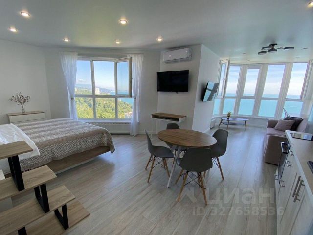 Самый видовой комплекс в Сочи! Район Приморье-благодать утопает в зелени и располагается в окружении пансионатов и санаториев! В шаговой доступности находятся несколько муниципальных пляжей, а так же закрытые пляжи санаториев, куда есть доступ только по пропускам! Планировка: Просторная кухня-гостиная, большая светлая спальня, открытый балкон с видом на море! Комплекс бизнес класса со своей закрытой охраняемой территорией, видеонаблюдение, консьерж сервисом. На территории: - отдельное здание с фитнес центром и бассейном - СПА комплекс - бутики и магазины, пункты выдачи - детские и спортивные площадки - подземный паркинг Надежная управляющая компания может сдавать вашу квартиру в аренду, в период вашего отсутствия, а вы сможете получать приятный, пассивный доход! За более подробной информацией звоните, пишите! Отвечу на все вопросы, организую показ!
