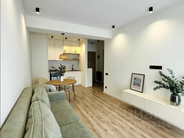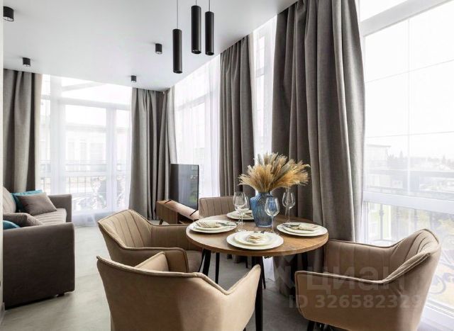 Резиденция с балконом, а также одним санузлом. Из окон открывается вид во внешний двор, на образовательный центр Сириус. Высота потолков составляет 3,1 метра. Отделка под ключ