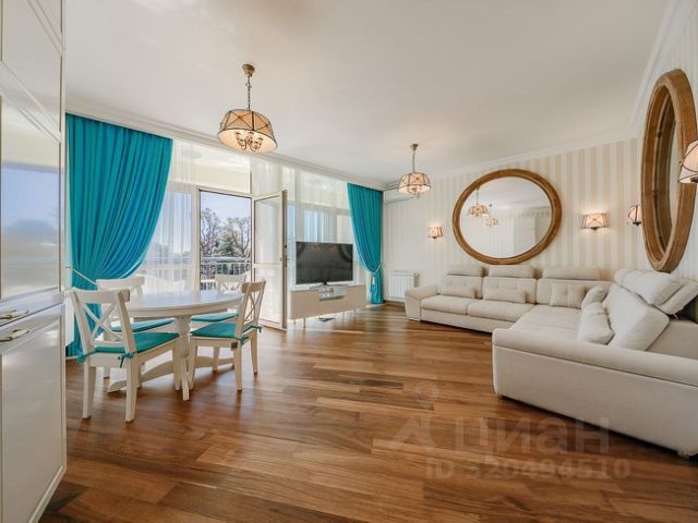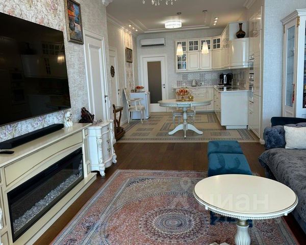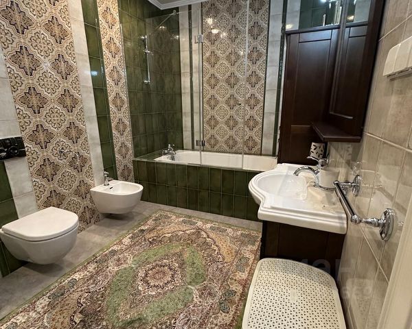 Эта квартира впечатляет своим классическим стилем с элементами итальянской эстетики, который подчеркивает её статус и изысканность. Внутреннее оформление выполнено с использованием исключительно высококачественных материалов. Стены и потолки украшены декоративной штукатуркой с золотым напылением, а также ручной лепниной и молдингами из натурального дерева, создающими уютную атмосферу. Напольные покрытия из мрамора в гостиной и санузлах, а также дубовый паркет в спальнях, говорят о безупречном вкусе владельца.