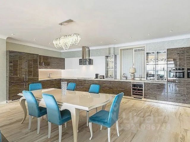Освещение также продумано до мелочей: хрустальные люстры и точечная подсветка с регулируемой температурой света создают комфортную обстановку в любое время суток. Кухня выполнена по последнему слову техники — здесь находится гарнитур из массива ореха с столешницей из кварцевого агломерата, а встроенная техника премиум-класса (Miele, Gaggenau) делает готовку настоящим удовольствием. Санузлы оформлены с изяществом: санфаянс от Villeroy & Boch, смесители с позолотой и мозаичная плитка создают атмосферу роскоши.