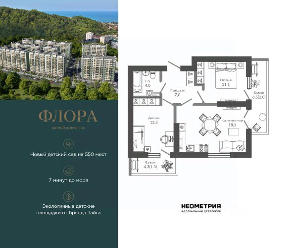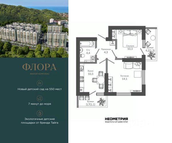 Проект включает в себя 7 жилых корпусов высотой 12 этажей. В подъездах выполнена дизайнерская отделка в светлой цветовой гамме с яркими акцентами, для удобства жителей в местах общего пользования предусмотрена навигация. В каждой секции предусмотрены помещения для хранения велосипедов и колясок с обустроенным местом для мойки колес и лап домашних животных. Покупателям в ЖК предложено множество планировочных решений: в наличии квартиры, как классического типа, так и европланировки. Из окон открываются виды на реку и горы. Квартиры сдаются без отделки. В состав комплекса входит школа на 2 000 мест, детский сад на 550 мест и фитнес-центр. На первых этажах расположены коммерческие помещения. Во дворах установлены детские площадки, спортивные комплексы и деревянные беседки для отдыха. По периметру ЖК ведется видеонаблюдение, к которому можно подключится online при помощи специального приложения для мобильных устройств. Рядом с комплексом располагается благоустроенная набережная реки Кудепста. Комплекс расположен в микрорайоне Кудепста города Сочи. В окрестностях района находится большая плантация пробкового дуба. В пешей доступности есть школы, детские сады, магазины, медучреждения, салоны красоты и места для отдыха. Комплекс расположен в 1,9 км от моря, и 7 км до Сочи.