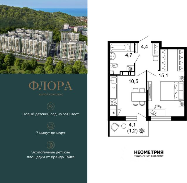 Проект включает в себя 7 жилых корпусов высотой 12 этажей. В подъездах выполнена дизайнерская отделка в светлой цветовой гамме с яркими акцентами, для удобства жителей в местах общего пользования предусмотрена навигация. В каждой секции предусмотрены помещения для хранения велосипедов и колясок с обустроенным местом для мойки колес и лап домашних животных. Покупателям в ЖК предложено множество планировочных решений: в наличии квартиры, как классического типа, так и европланировки. Из окон открываются виды на реку и горы. Квартиры сдаются без отделки. В состав комплекса входит школа на 2 000 мест, детский сад на 550 мест и фитнес-центр. На первых этажах расположены коммерческие помещения. Во дворах установлены детские площадки, спортивные комплексы и деревянные беседки для отдыха. По периметру ЖК ведется видеонаблюдение, к которому можно подключится online при помощи специального приложения для мобильных устройств. Рядом с комплексом располагается благоустроенная набережная реки Кудепста. Комплекс расположен в микрорайоне Кудепста города Сочи. В окрестностях района находится большая плантация пробкового дуба. В пешей доступности есть школы, детские сады, магазины, медучреждения, салоны красоты и места для отдыха. Комплекс расположен в 1,9 км от моря, и 7 км до Сочи.