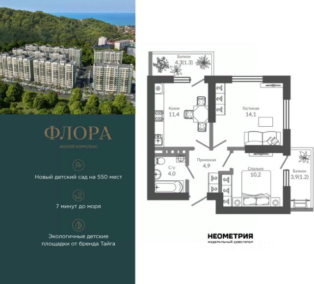 Проект включает в себя 7 жилых корпусов высотой 12 этажей. В подъездах выполнена дизайнерская отделка в светлой цветовой гамме с яркими акцентами, для удобства жителей в местах общего пользования предусмотрена навигация. В каждой секции предусмотрены помещения для хранения велосипедов и колясок с обустроенным местом для мойки колес и лап домашних животных. Покупателям в ЖК предложено множество планировочных решений: в наличии квартиры, как классического типа, так и европланировки. Из окон открываются виды на реку и горы. Квартиры сдаются без отделки. В состав комплекса входит школа на 2 000 мест, детский сад на 550 мест и фитнес-центр. На первых этажах расположены коммерческие помещения. Во дворах установлены детские площадки, спортивные комплексы и деревянные беседки для отдыха. По периметру ЖК ведется видеонаблюдение, к которому можно подключится online при помощи специального приложения для мобильных устройств. Рядом с комплексом располагается благоустроенная набережная реки Кудепста. Комплекс расположен в микрорайоне Кудепста города Сочи. В окрестностях района находится большая плантация пробкового дуба. В пешей доступности есть школы, детские сады, магазины, медучреждения, салоны красоты и места для отдыха. Комплекс расположен в 1,9 км от моря, и 7 км до Сочи.