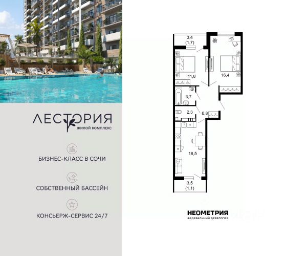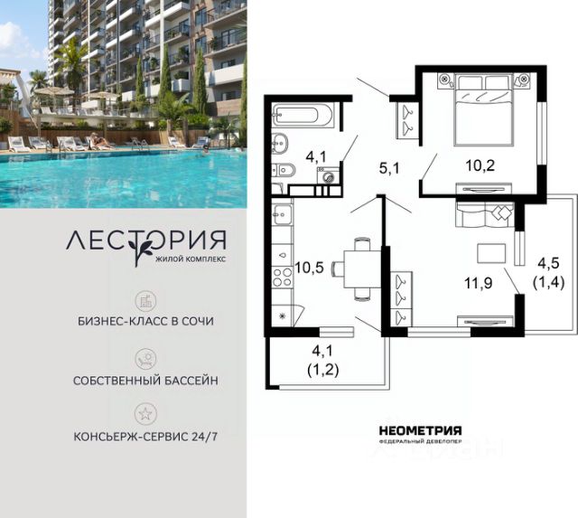 Продается квартира в жилом комплексе бизнес-класса "Лестория". В составе ЖК предусмотрена собственная аквазона площадью 473 квадратных метра с двумя подогреваемыми бассейнами, что соответствуют стандартам бизнес-класса. Аквазона объединяет взрослый и детский бассейны. В welcome-zone к услугам посетителей шезлонги и все необходимые принадлежности. Раздевалки с душевыми комнатами, инфракрасная сауна — здесь все предусмотрено для комфортного отдыха и полного расслабления. Для водного комплекса продуман отдельный вход, оборудованный системой контроля и управления доступом (СКУД). Аквазона только часть уникальной инфраструктуры "Лестории", которая включает в себя также благоустроенную территорию с пятьюдесятью функциональными зонами для прогулок, отдыха и занятий спортом, видовые террасы на крышах для отдыха, работы и встреч с друзьями, а также пространство набережной Кудепсты с шезлонгами и перголами. Жилой комплекс "Лестория" состоит из шести домов высотностью от 15 до 17 этажей, окружённых зеленым массивом национального парка. На придомовой территории для жителей предусмотрены закрытые дворы с круглосуточным видеонаблюдением, активити-центр для детей и подростков, тихие зоны для отдыха и медитации. На крышах домов будут созданы зеленые террасы для наслаждения прекрасными видами на море и горы. В проекте предусмотрены разные варианты отделки квартир под потребности покупателей. Тем, кто хочет воплотить в жизнь собственные интерьерные задумки, подойдут квартиры без ремонта. Для комфортной жизни и отдыха в комплексе будет работать круглосуточный консьерж-сервис уровня 5*, который с легкостью закроет все ежедневные потребности: от заказа продуктов и встречи гостей в аэропорту до выгула и дрессировки питомца. К услугам жителей ЖК "Лестория" — собственная управляющая компания, для инвесторов предоставляются услуги доверительного управления. #2tO53d