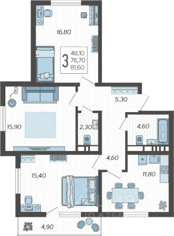 Продаётся 3-комнатная квартира в строящемся доме (Литер 4), срок сдачи: III-кв. 2026, общей площадью 80.4 кв.м., на 2 этаже. "Горный квартал" стирает границы между городом и природой. Несмотря на свое месторасположение и великолепие окружающих его пейзажей, квартиры наполнены привычным уютом. Вниз на лифте можно спуститься к магазинам, что займут первые этажи, поблизости находятся школы, детские сады, поликлиника, автобусные остановки. Жилой комплекс подойдет для летнего отдыха и для постоянного проживания семей с детьми. Приятный бонус к благам цивилизации - идеальная экология, великолепное звездное небо, которое видно только в горах, самый настоящий лес и чистые озёра рядом с домом. Купить 3-комнатную квартиру площадью примерно 80 м2 (кв.м.) в Сочи.