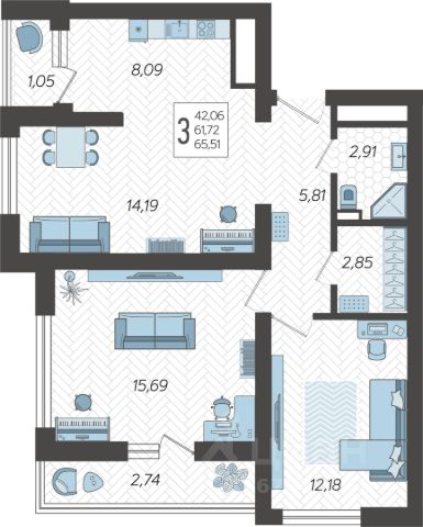 Высота потолков 3 метра, что в свою очередь делает квартиры визуально более просторными.
