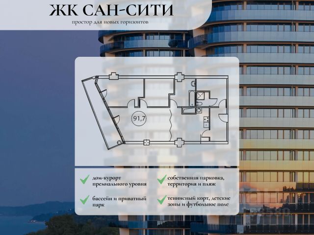 ЖК Сан-Сити характеризуется прекрасно организованной внутренней инфраструктурой:
