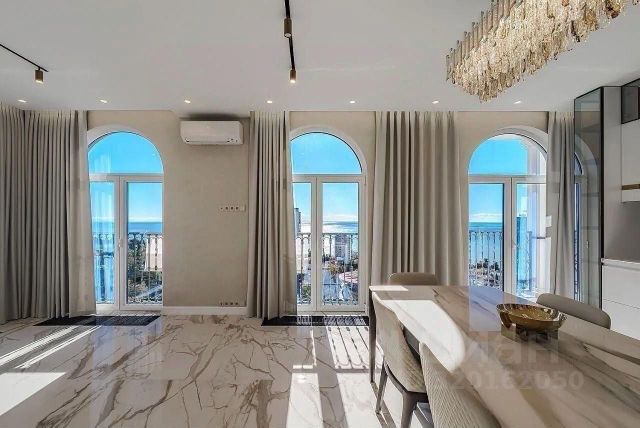 Эксклюзивная резиденция класса de-lux Волна Просторные 175 м² с безупречной планировкой: 3 роскошные спальни с индивидуальными гардеробными, кухня-гостиная с панорамным остеклением и зоной для приватных мероприятий. — 3 сан/узла с отделкой итальянскими материалами и сантехникой премиального качества, интегрированной подсветкой. — Круговая терраса с панорамным видом на море, исторический центр, парк Дендрарий и набережную. Идеальна для отдыха и проживания. — Дизайн-ремонт премиум-класса: современный минимализм с акцентами из натурального дуба, топовых и экологически чистых материалов. — Эксклюзивность: приватный лифт, доступ в закрытый клуб резидентов со спа зонами, подземный паркинг с индивидуальным сейф-хранилищем. Уникальное предложение для тех, кто ценит безупречный стиль, технологии и статус.