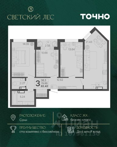 Квартира: 47,9м2 (с балконом 5,8м2)