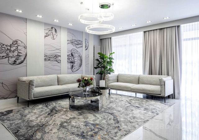 Трехкомнатная резиденция с кухней-гостиной и балконом, а также двумя санузлами Из окон открывается вид во внутренний двор, на бассейны, парки. Высота потолков составляет 3,1 метра. Отделка под ключ.
