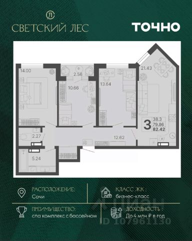 Добро пожаловать в "Grand Royal Residences" - уникальный, даже в масштабах России, комплекс апартаментов, расположенный на самой высокой точке Черноморской Ривьеры в центре Сочи. Пять монументальных корпусов бывшего санатория им. Кирова, приобретающих современный лоск. Решив выбрать нас в этот особый период, Вы сможете наслаждаться роскошью новейших апартаментов, при этом получив привлекательные цены, которые просто несравнимы с периодом официального открытия и полного запуска всего комплекса. Станьте частью новой истории, которую мы создаем прямо сейчас. Выберите апартамент для отдыха уже сегодня. Архитектурный ансамбль из пяти монументальных корпусов бывшего санатория им. Кирова построенный в 1936 году и воссозданный в современном стиле, сохраняет свою историческую ценность и официально признан памятником истории и культуры. Это место для тех, кто предпочитает классическую традицию сиюминутным капризам моды, не готов идти на компромиссы в вопросах комфорта и не нуждается в подтверждении своего статуса. Комплекс находится на закрытой парковой территории площадью 4 га, утопает в зелени тропических и субтропических растений. Уютные зеленые дворики в итальянском и японском стиле каждая деталь призвана подчеркнуть связь архитектуры с окружающим ландшафтом, где проект дизайна территории разрабатывали Arteza ведущая ландшафтная компания России. Grand Royal Residences для настоящих ценителей центра Сочи - всего в 5 минутах езды на автомобиле, расположены основные культурные и развлекательные заведения: парк отдыха "Ривьера", Морской порт, Художественный музей, Дендрологический парк, лучшие рестораны и бутики.