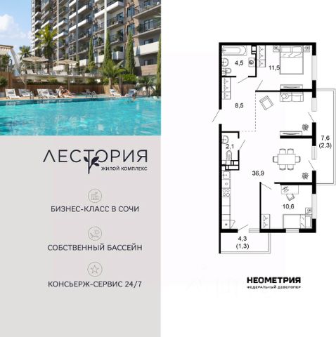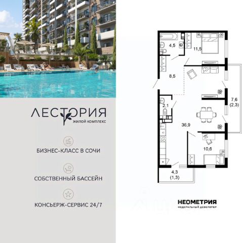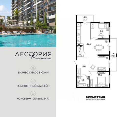 Продаются 3-комнатные апартаменты в строящемся доме (Дом 2), срок сдачи: II-кв. 2028, общей площадью 121.97 кв.м., на 3 этаже. Volna Residence - это комплекс для жизни на территории комплекса Volna, объединённый с отелем общей концепцией и инфраструктурой. 3 малоэтажных корпуса на 520 номеров расположены на первой береговой линии и имеют собственный бассейн. Территория комплекса Volna - 7,2 га. Более половины этой территории занимает парк и инфраструктура для жизни и отдыха.