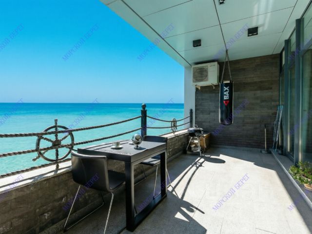 Общая площадь — 130 м², из них 108 м² — внутреннее пространство, дополнительно видовая терраса 20 м² (не входит в указанную площадь). Функциональная планировка: две отдельные спальни, каждая с гардеробной и собственным санузлом, просторная кухня-гостиная, холл и гостевой санузел. С террасы открывается панорамный вид на акваторию Чёрного моря.