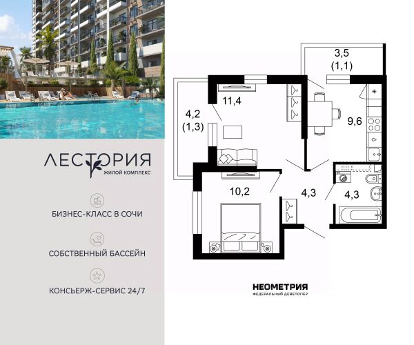Продаётся 3-комнатная квартира в строящемся доме (Дом 2), срок сдачи: II-кв. 2028, общей площадью 121.97 кв.м., на 4 этаже. Volna Residence - это комплекс для жизни на территории комплекса Volna, объединённый с отелем общей концепцией и инфраструктурой. 3 малоэтажных корпуса на 520 номеров расположены на первой береговой линии и имеют собственный бассейн. Территория комплекса Volna - 7,2 га. Более половины этой территории занимает парк и инфраструктура для жизни и отдыха.