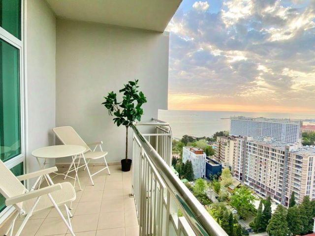 Видовая квартира в современном стиле К продаже представлена квартира в Сочи в доме элит-класса Миллениум Тауэр. Две спальни, просторная кухня-гостиная. В квартире выполнен ремонт в классическом стиле. Дооснащать ничего не нужно, оставляем всю мебель и технику новым жильцам. В шаговой доступности от дома все социальные и культурные объекты инфраструктуры — школы, поликлиники, детские сады, парки, скверы и театры. Отличная квартира для постоянного проживания и для круглогодичного отдыха в Сочи и инвестиций. Последняя квартира такой планировки в этом жилом комплексе. Звоните прямо сейчас. Реальному покупателю разумный торг. Документы чистые, один собственник, прописанных нет.