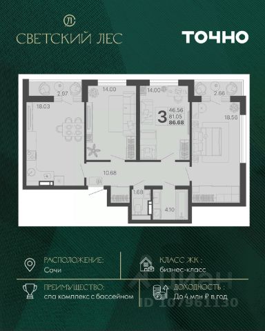 Добро пожаловать в "Grand Royal Residences" - уникальный, даже в масштабах России, комплекс апартаментов, расположенный на самой высокой точке Черноморской Ривьеры в центре Сочи. Пять монументальных корпусов бывшего санатория им. Кирова, приобретающих современный лоск. Решив выбрать нас в этот особый период, Вы сможете наслаждаться роскошью новейших апартаментов, при этом получив привлекательные цены, которые просто несравнимы с периодом официального открытия и полного запуска всего комплекса. Станьте частью новой истории, которую мы создаем прямо сейчас. Выберите апартамент для отдыха уже сегодня. Архитектурный ансамбль из пяти монументальных корпусов бывшего санатория им. Кирова построенный в 1936 году и воссозданный в современном стиле, сохраняет свою историческую ценность и официально признан памятником истории и культуры. Это место для тех, кто предпочитает классическую традицию сиюминутным капризам моды, не готов идти на компромиссы в вопросах комфорта и не нуждается в подтверждении своего статуса. Комплекс находится на закрытой парковой территории площадью 4 га, утопает в зелени тропических и субтропических растений. Уютные зеленые дворики в итальянском и японском стиле каждая деталь призвана подчеркнуть связь архитектуры с окружающим ландшафтом, где проект дизайна территории разрабатывали Arteza ведущая ландшафтная компания России. Grand Royal Residences для настоящих ценителей центра Сочи - всего в 5 минутах езды на автомобиле, расположены основные культурные и развлекательные заведения: парк отдыха "Ривьера", Морской порт, Художественный музей, Дендрологический парк, лучшие рестораны и бутики. 3-комнатная квартира в новостройке в районе Центральный в городе Сочи.