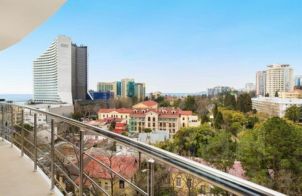 Продаются апартаменты с панорамным видом на море в премиальном комплексе Grand Karat Sochi (бывший Hyatt Regency), расположенном на первой береговой линии в самом центре Сочи по адресу ул. Орджоникидзе, 17. До моря — около 25 метров. Локация в акватории Морского порта считается одной из самых престижных и ликвидных в городе.