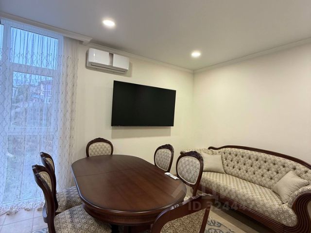 Очень просторная квартира 100 кв.м. в Центральном районе г.Сочи. Школа, детский сад, супермаркеты, рестораны-все рядом, автобусная остановка напротив дома. Ремонт, мебель, вся техника, установлены 3 кондиционера, всё это останется новым хозяевам - заезжай и живи. Вид на море и лесопарковую зону. До моря 15 минут пешком. Собственник.