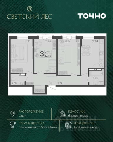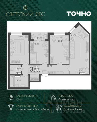 Светский лес - эксклюзивный жилой проект бизнес-класса в Сочи. Это остров цивилизации и технологий в окружении дикой природы национального парка с богатой инфраструктурой, наполненной различными сценариями премиального отдыха и жизни. Общественное пространство ЖК включает в себя прогулочные зоны, СПА комплекс с круглогодичным бассейном, детские и спортивные площадки, велодорожки, собственную набережную реки Сочи, торговую галерею с супермаркетами и ресторанами, а также инновационную школу и детский сад.