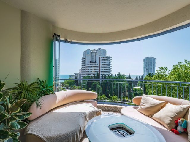 Для ценителей роскоши и личного пространства предлагается просторная квартира общей площадью 280 квадратных метров. Расположена на высоком этаже, что позволяет любоваться потрясающими видами на море и на лесопарковую зону, которые открываются из панорамных окон и просторной террасы общей площадью 100 квадратных метров.