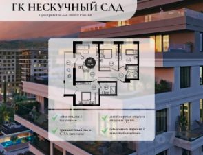 Проект представляет собой 2 дома высотой в 10 этажей. В облицовке стен корпусов используется энергоэффективный навесной вентилируемый фасад. Во всех домах выполнена дизайнерская отделка входных групп и установлены современные лифты. В проекте предложено множество планировочных решений: в наличии апартаменты, как классического типа, так и европланировки. Сдаются они без отделки и высотой потолков от 2.7 метров. Из окон номеров гостиничного комплекса "Нескучный сад" открывается неповторимый вид на горные вершины и Черное море. На внутренней закрытой территории проекта выполнен ландшафтный дизайн. Инфраструктура комплекса включает в себя: зону отдыха с просторным бассейном на открытом воздухе, современный SPA-комплекс с широким спектром косметических и оздоровительных процедур, просторный тренажерный зал с оборудованием, отвечающим высоким мировым стандартам, круглосуточный ресепшн и услуги консьерж-сервиса для решения любых задач 24/7, бутики известных брендов и ресторан. Для детей предусмотрен Детский центр с разнообразными развивающими и развлекательными программами. На территории комплекса спроектирован подземный паркинг с профессиональными парковщиками и видеонаблюдением. Проект расположен в Хостинском районе. Инфраструктура развита, в пешей доступности: магазины, кафе, банкоматы, медицинские учреждения, школы, детские сады. За 15 минут транспортом можно добраться до международного аэропорта Сочи, 30 минут до центральной набережной, 45 минут до курорта Красная Поляна. 4-комнатная квартира с лоджией в Сочи.