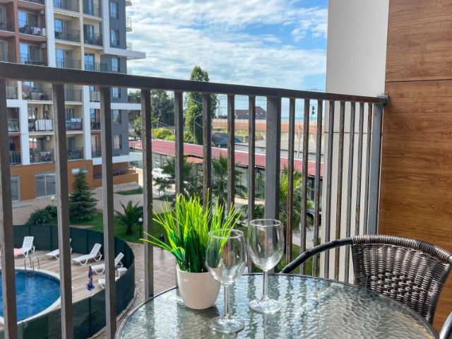 Продается квартира в доме бизнес-класса, расположенного в верхней точке экологически чистого микрорайона Бытха. Подходит как для постоянного проживания, так и для отдыха. В квартире выполнена отделка вайт бокс. Просторная планировка жилой зоны обеспечивает максимум света и свободы, а большие панорамные окна открывают захватывающий вид на бескрайние синевы Черного моря и живописные горизонты гор. Здесь есть все возможности для реализации самых смелых дизайнерских идей. Территория комплекса благоустроена, с зелёными насаждениями и местами для отдыха. Инфраструктура района развита: магазины, школа, детский сад, остановка общественного транспорта, находятся в пешей доступности. Это идеальный выбор для тех, кто ценит наслаждение жизнью, гармонию с природой и комфорт в каждом дне. Не упустите возможность стать владельцем этой замечательной квартиры!