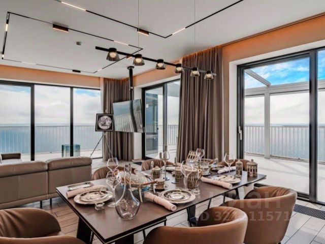 Продается роскошный пентхаус площадью 255 м² в Сочи, который предлагает уникальные условия для комфортного проживания и незабываемые виды. Просторная гостиная объединяется с обеденной зоной, оформленной в современном стиле с высококачественными отделочными материалами и продуманным освещением. Панорамные окна обеспечивают максимальное количество естественного света и великолепный вид на море. Пентхаус включает в себя несколько спальнй с отдельными ванными комнатами, каждая из которых имеет стильный интерьер и все необходимые удобства. Основная спальня отличается просторной планировкой и изысканным дизайном, а также выходом на террасу с джакузи, что делает ее идеальным местом для отдыха. На крытой террасе можно наслаждаться свежим воздухом и потрясающими закатами, создавая атмосферу для романтического вечера или вечеринки с друзьями. Внутренние помещения представлены с использованием дорогих материалов и продуманного дизайна, который гармонично сочетает функциональность и стиль. Данная недвижимость является идеальным решением для тех, кто ищет комфорт и роскошь в одном из самых привлекательных курортных городов России.