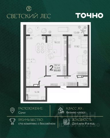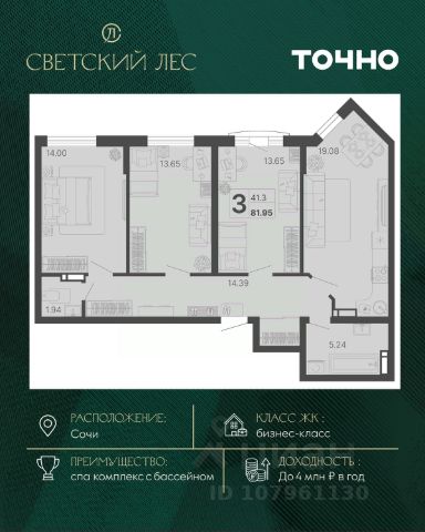 Жилой комплекс состоит из 7 домов переменной этажности от 11 до 20 этажей. В холлах и вестибюлях выполнена дизайнерская отделка, установлены скоростные лифты. На 1 этажах расположены зоны ожидания и колясочные. В проекте предложено множество планировочных решений: в наличии квартиры классического типа. Сдаются они с подчистовой отделкой, панорамными окнами и высотой потолков в 3м. Некоторые квартиры имеют вид на лесной массив и горы. На закрытой территории комплекса выполнен ландшафтный дизайн, установлены безопасные детские площадки для детей всех возрастов, места для отдыха, зоны барбекю с беседками, спортивные площадки, установлен открытый бассейн. На территории также оборудована своя набережная протяженностью в 1,2км. Для владельцев автомобилей предусмотрен отдельный многоуровневый паркинг. Жилой комплекс располагается в активно развивающемся Хостинском районе. В нескольких минутах ходьбы находятся поликлиники, школы, детские сады, кинотеатр, магазины и кафе. До центра Сочи можно добраться за 30 минут транспортом.