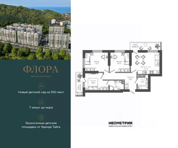 Продается квартира в ЖК "Флора" от федерального девелопера "Неометрия". Это жилой комплекс комфорт-класса в самом зеленом районе Сочи. При проектировании постарались максимально сохранить окружающую флору и фауну. Теплое море, горы, целебные источники, река, близость заповедника все это уже рядом с вами. Жилой комплекс "Флора" это: • Благоустроенная территория с собственной набережной. • 15 минут до моря • Современные детские площадки для веселых игр на свежем воздухе. • Яркие аллеи с цветниками и кустарниками для прогулок и утренних пробежек. • Амфитеатр с ландшафтным озеленением для просмотра фильмов под звёздным небом. • Спортивные зоны для любителей пляжного волейбола, бадминтона и йоги. Лучшие пляжи, нетронутая природа, целебные источники. Кудепста это прекрасный зеленый оазис, который расположился между историческим центром Сочи и Адлером. Благодаря выгодному местоположению ЖК "Флора" между Адлером и центром Сочи до самых популярных социальных, культурных и развлекательных объектов города можно добраться за считанные минуты: Олимпийский парк. Красная Поляна, аэропорт, жд-вокзал. Кроме того, в шаговой доступности расположена вся необходимая социальная инфраструктура, что удобно для жизни всех членов семьи: • 2 школы; • 3 детских сада; • 3 поликлиники; • 2 фитнес-центра; • 3 магазина и гипермаркета; • спортивная школа • 2 остановки общественного транспорта. 1-я очередь жилого комплекса сдана. Сдача 2-й очереди в 3 квартале 2023 года, 3-й в 1 квартал 2024 года. Дома строятся по 214-ФЗ с использованием эскроу-счетов. #zmb1sB