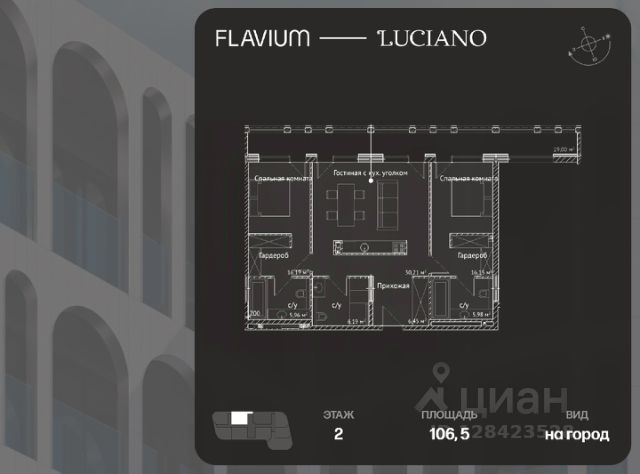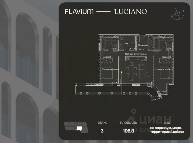 2-комнатные апартаменты располагаются на 6 этаже, а из окон открываются виды на город . Срок сдачи: IV-кв. 2025 Flavium—Luciano — воплощение изысканной архитектуры и гармонии с природой Дом Flavium—Luciano создан для тех, кто ценит утонченную красоту и безупречное качество. Его фасады словно переносят вас в эпоху древнего Рима, где величие соединено с элегантностью. Плавные линии и текстурированные материалы подчеркивают архитектурное мастерство, а панорамные окна раскрывают виды, достойные живописных полотен. Каждая деталь дома продумана до мелочей. Базовая отделка white box позволяет вам воплотить свою мечту об идеальном интерьере. Для тех, кто предпочитает не думать о мелочах, опционально доступна и чистовая отделка. Просторные лоты от 82 до 146 м² дают возможность обрести уютное пространство для жизни. И нет никаких студий только комфортные апартаменты для ценителей высокого уровня жизни. Для вашего удобства предусмотрен вместительный подземный паркинг, оснащённый мойкой, инновационные инженерные системы дома обеспечивают идеальный микроклимат в любое время года, а качественная звукоизоляция позволит наслаждаться морем, местом, природой, не отвлекаясь на постороннее. Жизнь во Flavium—Luciano это не просто пребывание в очередном комплексе. Это среда, формирующая свой комфортный мир вне суеты. Luciano — мир комфорта, который начинается за порогом Инфраструктура Luciano — это воплощение вашей мечты о современном ритме жизни, где все нужное находится в шаговой доступности. Парковая зона и пляж: Представьте утреннюю прогулку среди тенистых деревьев или вечерний отдых у моря. Собственный пляж в 57 минутах ходьбы станет местом, куда захочется возвращаться снова и снова. Гастрономическое путешествие: Четыре ресторана, каждый из которых предлагает уникальный опыт: • "Галерея" с изысканными блюдами европейской кухни. • "Adriana", где средиземноморские шедевры встречаются с паназиатскими акцентами. • "Garden Cafe" с уютной атмосферой сада. • "Посейдон" — панорамный ресторан на побережье, который станет вашим любимым местом для романтических вечеров. Акватермальный и спа-комплекс: Погрузитесь в мир релаксации с хаммамом, русской баней и приватными спа-зонами. А современный фитнес-клуб и медицинский центр помогут вам заботиться о здоровье и поддерживать отличную форму. Семейный комфорт: Детский клуб Luciano Kids создан для гармоничного развития вашего ребенка. Это место, где малыши познают мир через творчество, а родители могут расслабиться, зная, что их дети в надежных руках. Luciano — это не просто инфраструктура, это образ жизни, который подчёркивает статус и окружает заботой. Flavium—Luciano ждет вас, чтобы стать вашим домом, вашим миром и вашей историей.