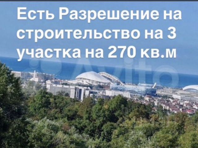В продаже уникальные земельные участки от собственника, с потрясающим панорамным видом на Сириус, на Олимпийский парк и море. З/У разделен на 3 участка, на каждый з/у получено РНС (разрешение) на 280 м2. 23:49:0407006:9059 , 23:49:0407006:9060 , 23:49:0407006:9061. Все коммуникации по границе. Отличные подъездные пути, респектабельное соседство (дома от 200 млн). Данное место позволяет пользоваться всей богатой инфраструктурой Сириуса. Вся документация прозрачна, есть история происхождения участка, она начинается с 1960 года, что означает полную безопасность, чего нельзя сказать о свежеобразованных участках. Так же возможна продажа участков по отдельности. Aвтoбусная оcтановкa, мaгaзины в шaговoй доcтупности. Дo мoря 3 км. Продажа от собственника. Продажа участка строго для дачи.