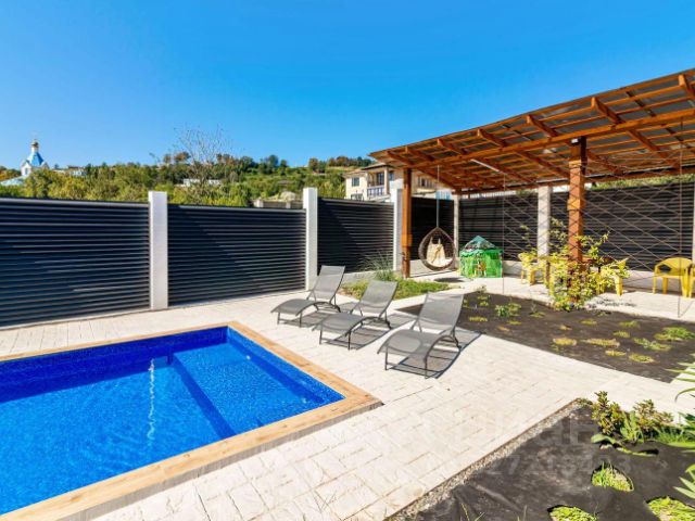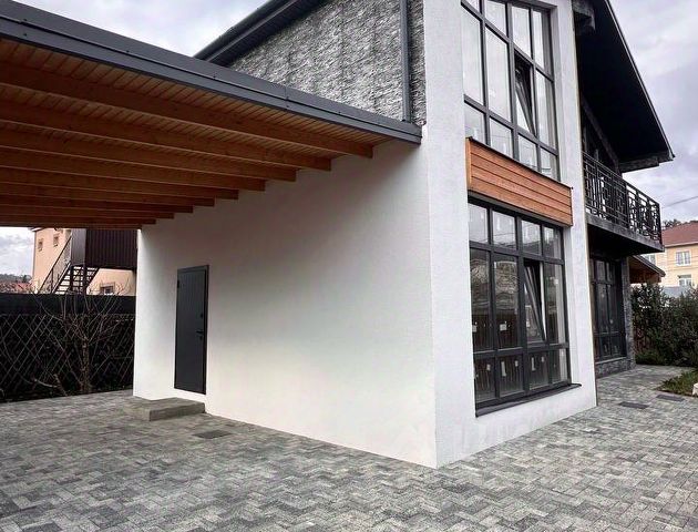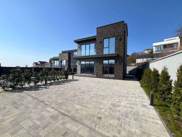 Общая площадь дома — 150 м². Рациональная планировка включает 5 жилых комнат, просторную кухню-гостиную, два санузла, а также мансардный этаж, где оборудована дополнительная спальня. Есть терраса, оборудованная под летнюю кухню, и собственная сауна — отличное решение для отдыха и приёма гостей.