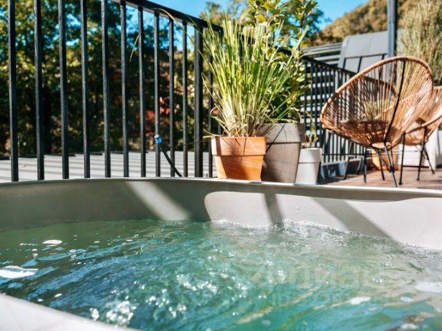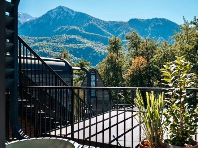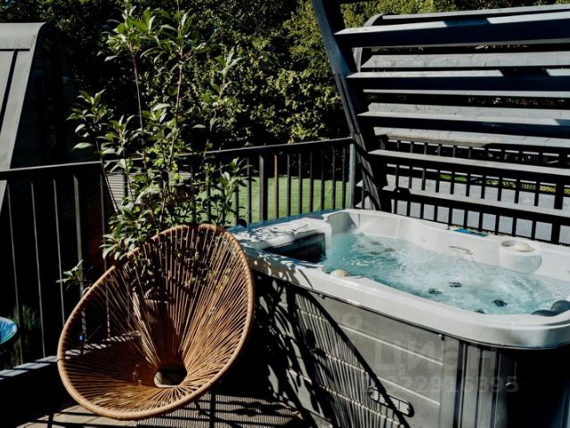 — 8 дизайнерских, видовых коттеджей по 40 , 60 и 85 м² оснащенных системой умный дом, укомплектованных мебелью, техникой и принадлежностями, включая джакузи с подогревом на террасе с видом на горы.