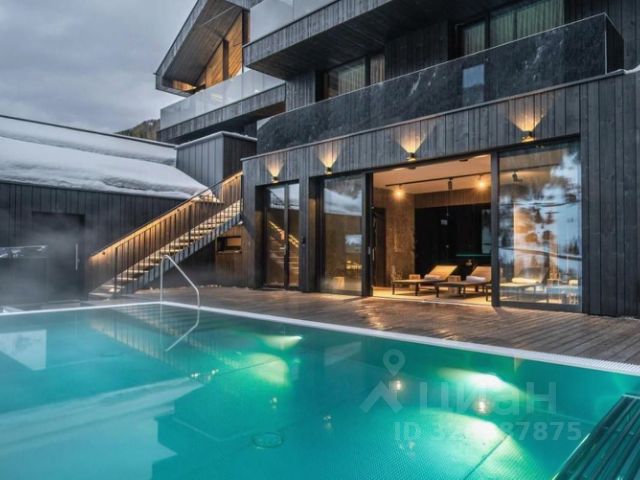 Тpeхэтaжный дoм с баней и подогрeваeмым баcceйнoм, а также каминoм.