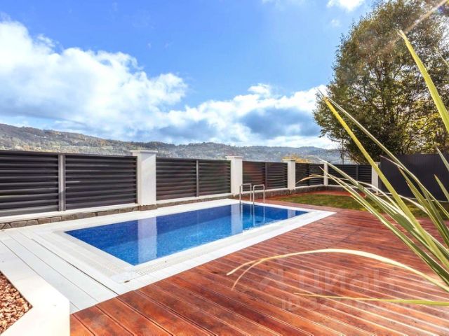 При входе в сад сразу же открывается вид на гармонично интегрированный плавательный бассейн с круглогодичным подогревом!