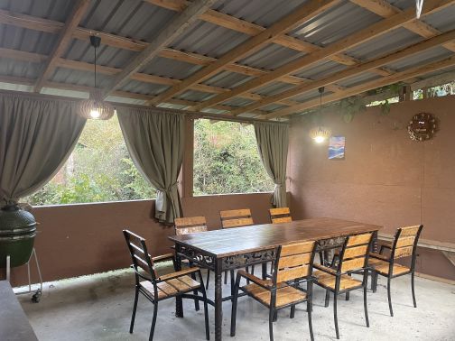 Через просторную подъездную дорожку можно попасть в гараж и крытый вход. Дорога вымощена и позволяет парковать несколько автомобилей. Видеодомофон и почтовый ящик. В прихожей имеются встроенные шкафы для одежды, шкаф для коммунальных приборов и доступ в гараж. В центре прихожей расположена величественная лестница, ведущая в жилые помещения и на верхний этаж. Лестница бетонная, со ступенями, отделанными натуральным камнем. Из холла можно попасть в прачечную, оборудованную комбинированной стойкой и подключением для стиральной машины. В этой комнате есть большая стеклянная раздвижная дверь, обеспечивающая выход во внутренний дворик и позволяющая проникать дневному свету. Рядом находится студия, из которой также есть выход во внутренний дворик.