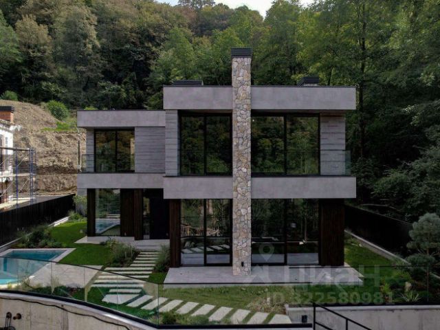 Представляем вашему вниманию роскошную загородную резиденцию в премиальном коттеджном посёлке Эста! - Посёлок расположен в с. Лесное Адлерского района в окружении реликтового леса и природных достопримечательностей: каньон Псахо, Скайпарк, будущий гольф-курорт, Троице-Георгиевский и Георгиевский монастыри - Локация полностью защищена от стихийного строительства - Премиальные материалы отделки фасада (термоясень, испанский микроцемент, бежевый сланец брекчия) - Элемент второго света с высотой потолков более 7 метров - Высокие потолки от 3,7 м, алюминиевый панорамный профиль, остекление Crystal Glass - Камин с топками Brunner в каждом доме - Развитая внутренняя инфраструктура: свой приватный парк с зонами отдыха, детские площадки, зоны терренкура, площадка для йоги - Управляющая компания с высоким уровнем сервиса и безопасности - Продажа от юридического лица с полной суммой в договоре, возможен возврат НДС Лот 13 Площадь дома 307 кв.м. Площадь участка 5,7 соток Индивидуальные характеристики дома: - Уникальные видовые характеристики - Гараж на нулевом уровне - Оборудованная зона отдыха с бассейном - Дополнительное парковочное место - Индивидуальный выход в парковую зону с участка Планировка: 1 этаж - кухня-гостиная-столовая с выходом на видовую террасу, гостевая спальня, санузел, гардеробная, сауна, 2 этаж - мастер-спальня с гардеробной и санузлом, три спальни, санузел.