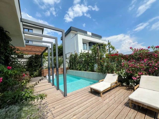 На участке обустроена уютная зона отдыха с беседкой и летней кухней, зоной релакса и летним душем. Дополнительно предусмотрено место для установки бани-бочки и бассейна, что позволяет создать полноценную приватную курортную зону на собственной территории.