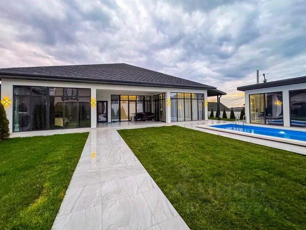 Продажа коттеджа бизнес-класса Местоположение: Коттеджный комплекс бизнес-класса, состоящий из 8 домов Общая площадь участка: 40 соток Площадь под каждым домовладением: от 4.3 до 4.6 соток Инфраструктура: * Закрытая территория * Видеонаблюдение * Прямой выход в национальный парк * Виды на Кавказские горы * Бетонированный подъезд Характеристики дома: * Внутренняя площадь: 255 м² * Эксплуатируемая кровля: 80 м² * Площадь балконов: 15 м² Территория дома: * Бассейн (6*3 м) * Парковка на 2 автомобиля * Зона патио * Ландшафтное озеленение * Брусчатка Коммуникации: * Электричество (15 кВт) * Газ (индивидуальная газификация с лицевым счётчиком) * Центральное водоснабжение * ЛОС (локальные очистные сооружения) Конструктивные особенности: * Фундамент: Свайный монолитный железобетонный * Каркас: Монолитный железобетонный, заполнение керамзитобетонными блоками Отделка: * Фасады: Японские фиброцементные панели Asahi * Дверные и оконные проемы: Алюминиевый теплый профиль Алютех с энергосберегающими стеклопакетами Solar * Террасирование: Планировочные монолитные железобетонные стены с свайным фундаментом глубиной от 6 до 10 метров Вблизи коттеджного комплекса находятся: * продуктовые магазины (Пятёрочка, Магнит, Cherry Market); * аптеки (Магнит Аптека, Фаворит); * банкоматы (Сбербанк, ВТБ, Тинькофф); * пункты выдачи заказов (Wildberries, Ozon); * медицинские учреждения (медицинский центр для сдачи анализов); * образовательные учреждения (Средняя школа 67, Средняя общеобразовательная школа 29, Детский сад комбинированного вида 123). Дорогой коттедж с красивой территорией в селе Черешня Краснодарского края.