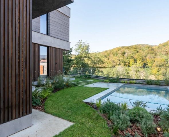 Посёлок расположен на 2,5 Га приватной территории и состоит из 22 домов в современной архитектуре. Премиальные материалы отделки фасада, камин с топками Brunner у каждого дома.