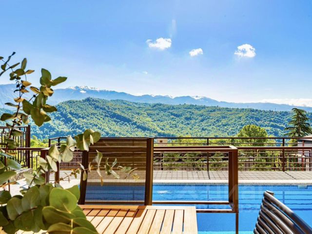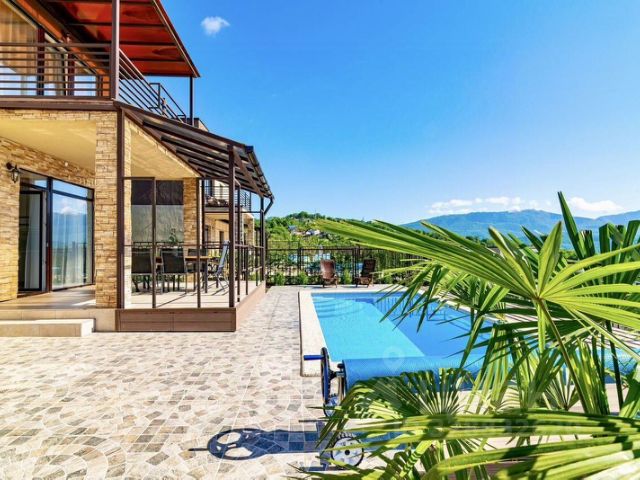 Адлерский р-н, с. Высокое 3-х этажное домовладение 500 кв.м, Земельный участок 16 соток Первый этаж монолитный, второй третий этаж построен из Ярославского кругляка. Дом строился для себя, для жизни, не на продажу. Территория участка сомтавляет 16 соток, на территории расположены: подогреваемый басейн, мангальная зона, русская баня из кедра, большая парковочная зона, примерно на 6-7 машин, а также есть фруктовый сад. Въездная часть выложена из дикого камня. Панорамный вид 360 градусов - море, горы, лес. Первый этаж состоит из большой летней кухни, большая гостинная, спальная, кладовая комната, техническая комната, санузел, большой хол. Второй этаж: большая гостинная с кухней и выходом на терассу, гостинная/кухня оборудованы дорогой италянской мебелью, в каждой комнате присутстауют кондиционеры. В спальной комнате мебель из Италии, пол выложен паркетной доской, большой санузел, гардеробная. Третий этаж: четыре спальни, также с выходом на террасу, в доме установлены камеры видеонаблюдения. Очень удобная транспортная доступность, подъездные пути бетонные, растояние до Красной поляны 25 мин, до центра Адлера 10 мин, до Сириуса 7 минут. В 5-ти мнутах от дома вся инфраструктура для комфортного проживания. Полная сумма в договоре! Купить элитный коттедж в селе Высокое Краснодарского края.