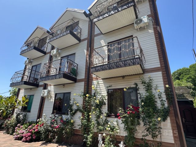 Продается гостиничный комплекс у моря, состоящий из двух капитальных домов площадью 606 и 484 кв.м. в поселке Головинка Лазаревского района курорта Сочи. В первом строении - 23 двухместных номера, во втором - 17 номеров (в том числе два двухкомнатных номера). Все номера оборудованы TV, кондиционерами, холодильниками, санузлом и ванными комнатами. Общая (суммарная) площадь 1090 кв.м. Комплекс располагается на участке площадью 15 соток. Коммуникации все центральные: газоснабжение, водоснабжение и канализация, также есть котельная, энергоснабжение производится раздельно для каждого из зданий. На территории комплекса расположены: бассейн площадью 6х12 м, детский бассейн, насосно-фильтрационная система, постирочная и бельевая комнаты, гаражи для авто, собственное кафе и бильярдная комната. Территория огорожена капитальным забором, ведется видеонаблюдение. Все в собственности. Пляж находится в 10 минутах ходьбы. Также неподалеку протекает горная река Шахе. Вся развитая городская и курортная инфраструктура в шаговой доступности. Вдобавок ко всему комплекс предоставляет спорт-площадки для проведения тренировочного процесса. Подходит для проживания, и готовый бизнес на Сочинском побережье! [Идентификатор объекта 8826] Дом на улице Торговая в микрорайоне Головинка в городе Сочи.