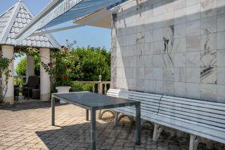 На территории: один основной бассейн и два дополнительных, бар при бассейне, теннисный корт с разметкой, зоны солярия и отдыха на первом и втором уровне, навесы от солнца, сад с экзотическими деревьями и растениями, цветная подсветка по всей территории сада, мощеные дорожки, фонтан, инсталляции из кварца и стекла, территория Резиденции обустроена полностью. Имеется крытый и открытый паркинг, возможно размещать 6-8 машин.