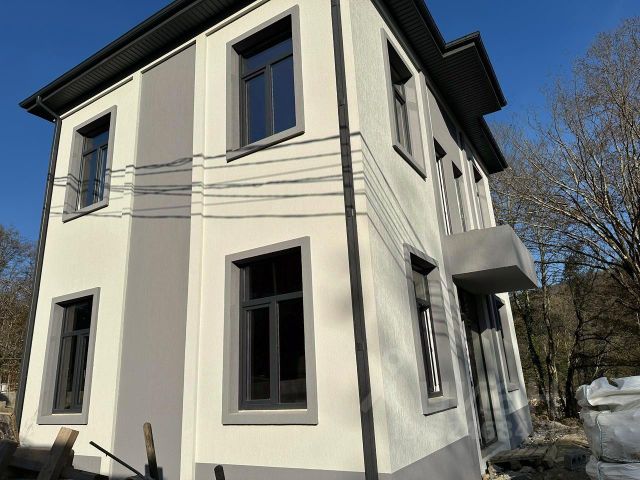 Продам современный дом в стиле шале с панорамными окнами, 2 балконами и террасой, и видом на горы. Новый двухэтажный дом современной архитектуры. Фасад выполнен в сочетании дерева и декоративного камня, большие панорамные окна дают максимум света - дом выглядит эффектно. Широкие свесы крыши защищают террасы и балконы. Дом в черновой отделке — удобная свободная планировка позволит реализовать ваш проект. Логично зонируется: - 1 этаж: просторная кухнягостиная с выходом на террасу и во двор, кабинет/гостевая, санузел, котельная/постирочная. - 2 этаж: 3 спальни, санузел, две спальни с выходом на собственные балконы. Преимущества: - современный фасад и энергоэффективные стеклопакеты; - два балкона и большая терраса; - много естественного света и высокие потолки; - ровный, огороженный участок, место для парковки нескольких авто; - тихая улица с застройкой частными домами, удобный круглогодичный подъезд. Отличный вариант для постоянного проживания или загородного отдыха. Дополнительно вышлю планировку и видео по запросу. Звоните — организуем показ, возможен разумный торг.