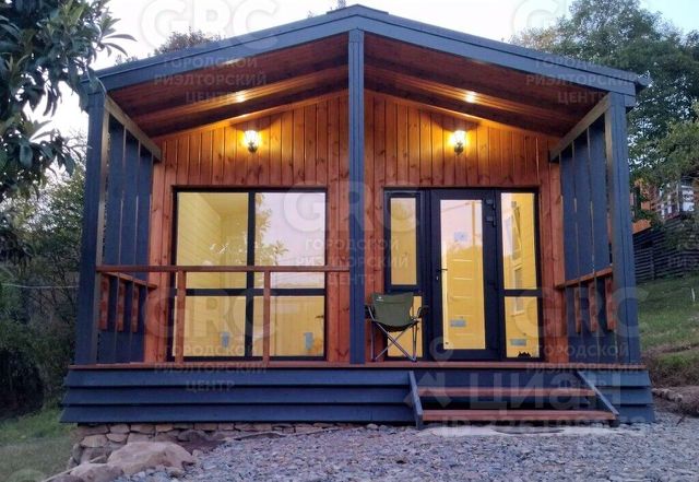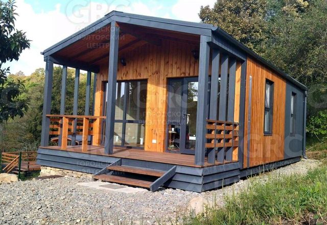 - Продажа от собственника. Новый, готовый к проживанию, энергоэффективный дом в небольшом коттеджном посёлке с закрытой территорией в стиле барнхаус. - Статус ИЖС, полный пакет документов, прописка, адрес, возможна ипотека. - Две комнаты, санузел и терраса под крышей с великолепным видом. Высота потолков 2,4-3,0 м. - Верхнее Лоо, Дачный переулок, 5 км. от моря. Хорошая транспортная доступность. Активно развивающийся район, есть школа, магазины, ресторан, круглогодичный аквапарк и в то же время рядом лес, красивое горное ущелье, прекрасный панорамный вид. Высота над уровнем моря 65 м. Бетонированный заезд. - Электросеть 15 кВт по сельскому тарифу. Автономное водоснабжение: артезианская скважина. Канализация индивидуальный автономный био-ЛОС. - Проектировщик и исполнитель строительных работ - компания "Серьёзное Дело". Дом построен по каркасно-рамочной или т.н. канадской технологии - каркас из древесины камерной сушки обработанный огнебиозащитой, утеплённый плитной минеральной ватой на винтовых сваях. Отделка фасада имитацией бруса окрашенная красками Tikkurila. Кровля - профнастил с полимерным шумопоглощающими покрытием. Это Не модульный дом! Возможна пристройка 20м2. - В доме выполнена чистовая отделка из качественных материалов: вагонка "штиль" заводской окраски безопасными красителями на водной основе, водостойкий ламинат QuickStep, межкомнатные двери ProfilDoors. В санузле тёплый пол и установлена сантехника. Трасса для кондиционера. Панорамные окна в пол c теплосберегающим серебряным напылением.